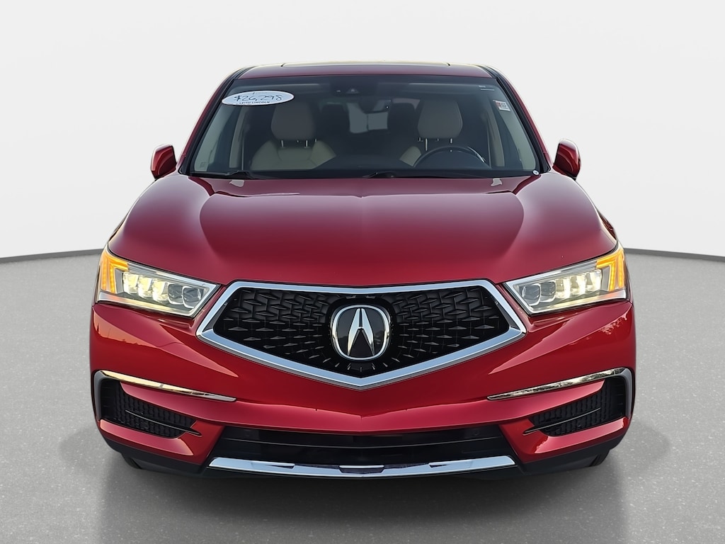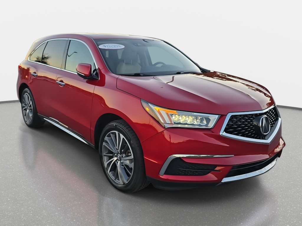 Red 2019 Acura MDX 3.5L Technology Pkg w/Entertainment Pkg FWD 9-Speed Automatic 3.5L V6 SOHC i-VTEC 24V Parchment Leather, 3rd row seats: bench, Apple CarPlay/Android Auto, Auto High-beam Headlights, Heated front seats, Heated rear seats, Lane departure: Lane Keeping Assist System (LKAS) active, Power moonroof, Premium audio system: Acura/ELS Surround, Rain sensing wipers.
