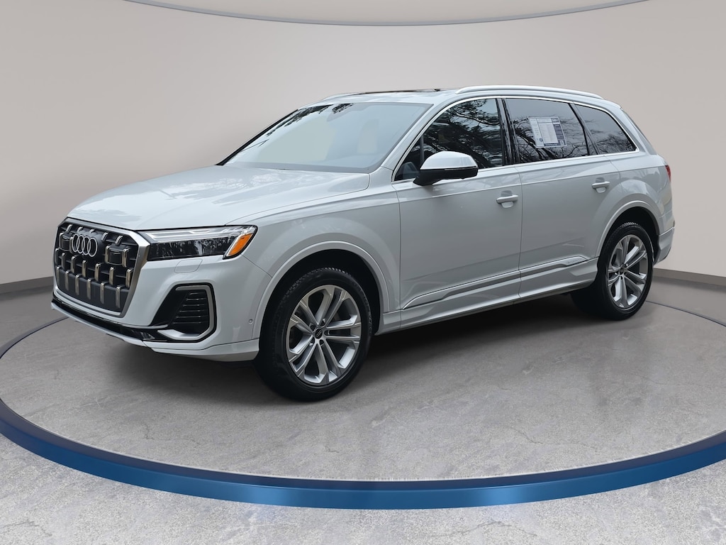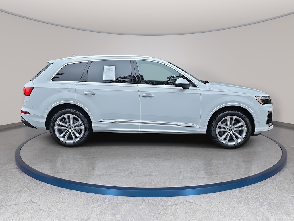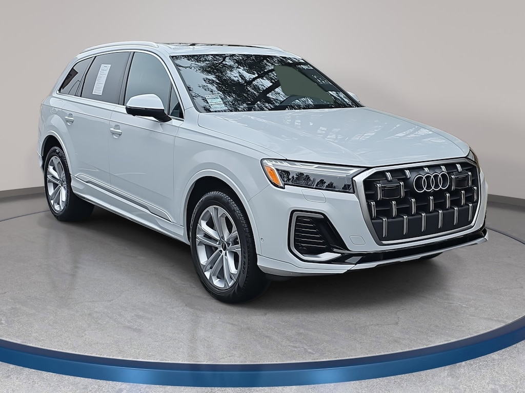 Clean CARFAX. CARFAX One-Owner. Glacier White Metallic 2025 Audi Q7 45 Premium quattro quattro 8-Speed Automatic with Tiptronic 2.0L 4-Cylinder TFSI Clean Carfax 1 Owner/No Accident Vehicle, LOCAL TRADE IN, LEATHER, HEATED SEATS, PANORAMIC SUNROOF, NAVIGATION, ALL WHEEL DRIVE, THIRD ROW SEAT, SMART KEY W PUSH BUTTON START, LANE DEPARTURE ALERT W STEERING ASSIST, BLIND SPOT MONITOR, 1-OWNER, NO ACCIDENTS, MUST SEE!, BACK UP CAMERA, POWER LIFTGATE, 10 Speakers, 3rd row seats: bench, ABS brakes, Air Conditioning, AM/FM radio: SiriusXM w/360L, Auto High-beam Headlights, Auto-dimming door mirrors, Auto-dimming Rear-View mirror, Automatic temperature control, Compass, Delay-off headlights, Electronic Stability Control, Exterior Parking Camera Rear, Four wheel independent suspension, Front anti-roll bar, Front dual zone A/C, Fully automatic headlights, Garage door transmitter: HomeLink, Genuine wood door panel insert, Heated Front Bucket Seats, Heated front seats, Leather Shift Knob, Leather steering wheel, Low tire pressure warning, Memory seat, Navigation system: Audi MMI Navigation plus with Touch Response, Outside temperature display, Passenger vanity mirror, Power driver seat, Power Liftgate, Power moonroof: Panoramic, Power passenger seat, Power steering, Power windows, Radio: Audi Sound System, Rain sensing wipers, Rear air conditioning, Rear seat center armrest, Rear window defroster, Reclining 3rd row seat, Remote keyless entry, Steering wheel memory, Steering wheel mounted audio controls, Telescoping steering wheel, Traction control, Turn signal indicator mirrors, Wheels: 19 5-Arm-Star Design.