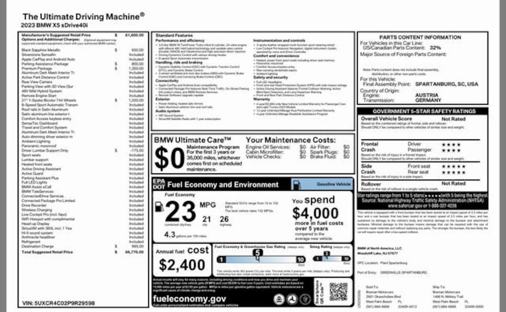 Clean CARFAX. CARFAX One-Owner. 2023 BMW X5 sDrive40i 8-Speed Automatic Sport 3.0L I6 DOHC 24V TwinPower Turbo
