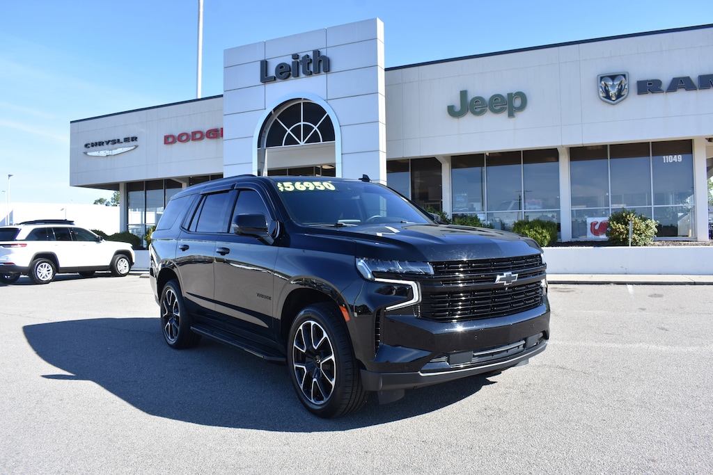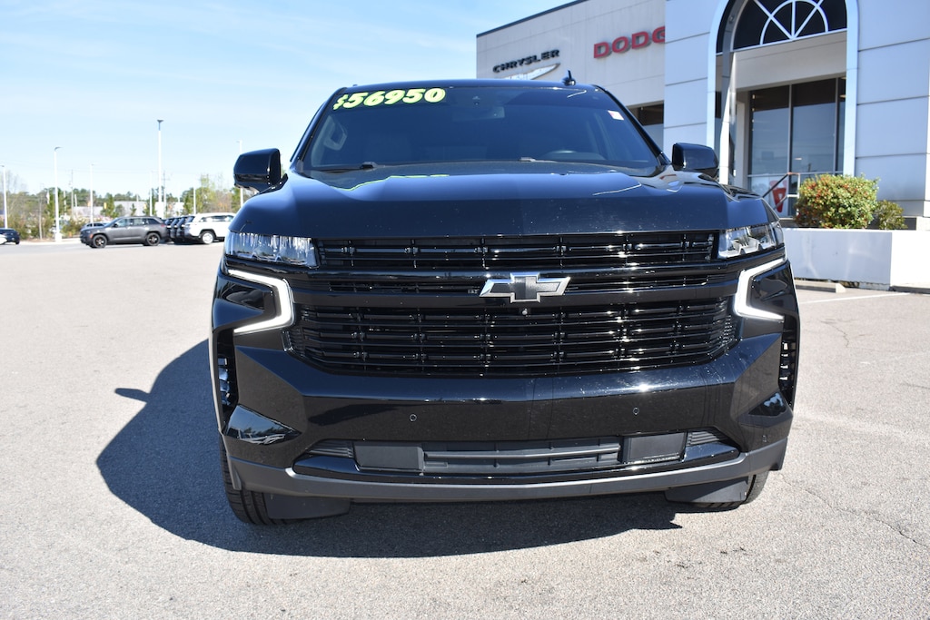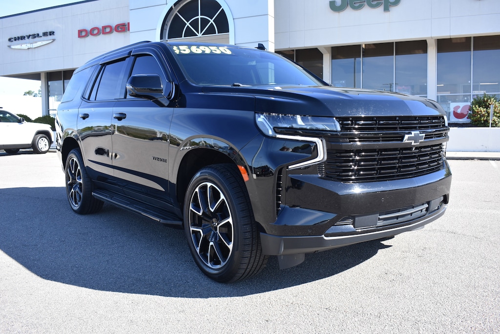 Clean CARFAX. Black 2023 Chevrolet Tahoe RST 4WD 10-Speed Automatic with Overdrive EcoTec3 5.3L V8 10-Way Power Driver & Passenger Seat Adjusters, 1st & 2nd Row Color-Keyed Carpeted Floor Mats, 2nd Row Pwr Release 60/40 Split-Folding Bench Seat, 3.23 Rear Axle Ratio, 3rd Row 60/40 Power-Folding Split-Bench Seat, 3rd row seats: split-bench, 4-Wheel Disc Brakes, 9 Speakers, ABS brakes, Adaptive Cruise Control, Air Conditioning, Alloy wheels, AM/FM radio: SiriusXM with 360L, Apple CarPlay/Android Auto, Auto High-beam Headlights, Auto-Dimming Inside Rear-View Mirror, Auto-dimming Rear-View mirror, Automatic temperature control, Bose 9-Speaker Stereo Audio System Feature, Brake assist, Bright Front & Rear Door Sill Plates, Color-Keyed Carpeting Floor Covering, Compass, Delay-off headlights, Driver & Front Outboard Passenger Airbags, Driver Alert Package, Dual front impact airbags, Dual front side impact airbags, Dual-Pane Power Panoramic Sunroof, Electronic Stability Control, Emergency communication system: OnStar and Chevrolet connected services capable, Enhanced Automatic Emergency Braking, Enhanced Driver Information Center, Floor Console w/Storage Area, Four wheel independent suspension, Front anti-roll bar, Front dual zone A/C, Front High-Back Reclining Bucket Seats, Fully automatic headlights, Garage door transmitter, Hands-Free Rear Power Programmable Liftgate, HD Surround Vision, Heated 2nd Row Outboard Seats, Heated door mirrors, Heated Driver & Front Passenger Seats, Heated front seats, Heated Steering Wheel, Infotainment Display, Lane Change Alert w/Side Blind Zone Alert, LED Daytime Running Lamps, Low tire pressure warning, Luxury Package, Memory seat, Memory Settings, Memory Settings for Driver, Navigation System, Not Equipped w/Wheel Locks (LPO), Occupant sensing airbag, Outside Heated Power-Adjustable Mirrors, Outside temperature display, Overhead airbag, Panic alarm, Perforated Leather Seat Trim, Power door mirrors, Power driver seat, Power Liftgate, Power passenger seat, Power Release 2nd Row Bucket Seats, Power steering, Power Tilt & Telescopic Steering Column, Power windows, Preferred Equipment Group 1SP, Premium audio system: Chevrolet Infotainment 3 Premium, Premium Smooth Ride Suspension, Radio: Chevrolet Infotainment 3 Premium System, Rain sensing wipers, Rear air conditioning, Rear anti-roll bar, Rear Cross Traffic Alert, Rear Pedestrian Alert, Rear window defroster, Rear window wiper, Remote keyless entry, Remote Start, Roof rack: rails only, Security system, Set of 4 Wheel Locks (LPO), SiriusXM Radio w/360L, Speed control, Speed-sensing steering, Split folding rear seat, Spoiler, Steering wheel mounted audio controls, Tachometer, Telescoping steering wheel, Tilt steering wheel, Traction control, Trip computer, Universal Home Remote, Variably intermittent wipers, Voltmeter, Wheels: 22" x 9" Bright Machined, Wireless Charging, Wrapped Steering Wheel.