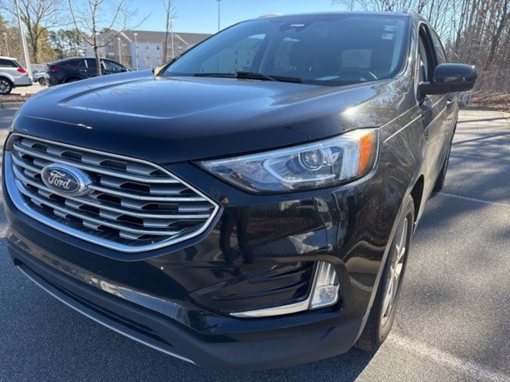 New Price! Agate Black Metallic 2021 Ford Edge SEL FWD 8-Speed Automatic EcoBoost 2.0L I4 GTDi DOHC Turbocharged VCT 110V/150W AC Power Outlet, Convenience Package, Equipment Group 201A, Perimeter Alarm, Power Liftgate, Remote Start System, Universal Garage Door Opener (UGDO), Wireless Charging Pad.