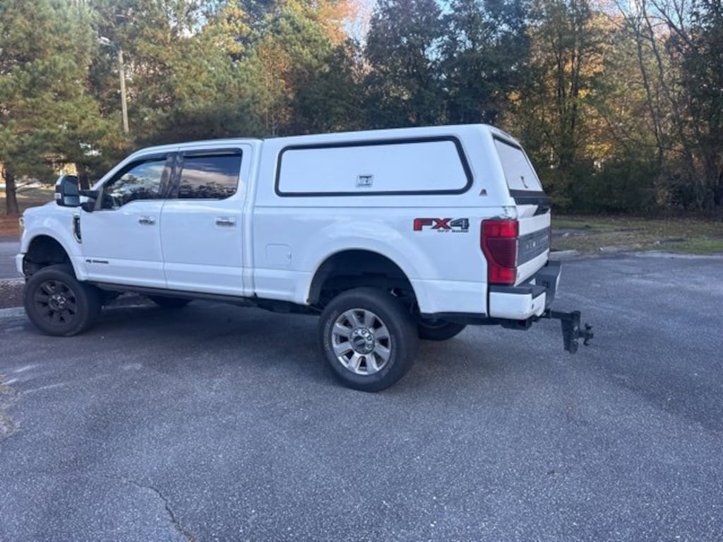 Star White Metallic Tri-Coat 2022 Ford F-250SD Platinum 4WD 10-Speed Automatic Power Stroke 6.7L V8 DI 32V OHV Turbodiesel LOCAL TRADE, 4WD, FX4 Off-Road Package, Hill Descent Control, Off-Road Specifically Tuned Shock Absorbers, Order Code 703A, Unique FX4 Off-Road Box Decal.