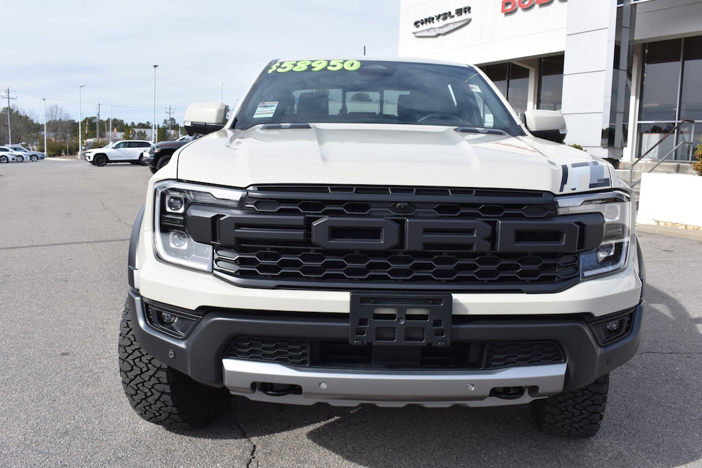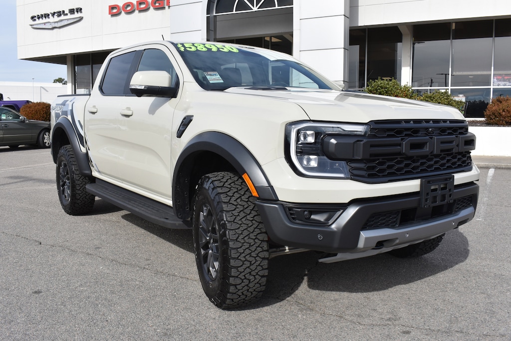 Clean CARFAX. CARFAX One-Owner. Desert Sand 2025 Ford Ranger Raptor 4WD 10-Speed Automatic 3.0L EcoBoost V6 10 Speakers, 4-Wheel Disc Brakes, 4.27 Axle Ratio, ABS brakes, Air Conditioning, Alloy wheels, AM/FM radio: SiriusXM, Auto High-beam Headlights, Auto-dimming Rear-View mirror, Automatic temperature control, Brake assist, Compass, Delay-off headlights, Dual front impact airbags, Dual front side impact airbags, Electronic Stability Control, Emergency communication system: SYNC 4 911 Assist, Equipment Group 800A Standard, Front anti-roll bar, Front dual zone A/C, Front fog lights, Front wheel independent suspension, Fully automatic headlights, Garage door transmitter, Heated door mirrors, Heated front seats, Heated steering wheel, Illuminated entry, Internet access capable: FordPass Connect 4G, Leather Shift Knob, Leather steering wheel, Leather-Trimmed Front Heated Bucket Seats, Low tire pressure warning, Memory seat, Navigation system: Connected Navigation, Occupant sensing airbag, Overhead airbag, Panic alarm, Passenger door bin, Power door mirrors, Power driver seat, Power passenger seat, Power steering, Power windows, Radio: B&O Sound System by Bang & Olufsen, Rain sensing wipers, Raptor Exterior Graphics, Rear step bumper, Rear window defroster, Remote keyless entry, Security system, SiriusXM Satellite Radio, Speed control, Speed-sensing steering, Steering wheel mounted audio controls, SYNC 4A, Telescoping steering wheel, Tilt steering wheel, Tough Bed Spray-In Bedliner, Traction control, Trip computer, Turn signal indicator mirrors, Variably intermittent wipers, Voltmeter, Wheels: 17" Gray-Painted Aluminum.