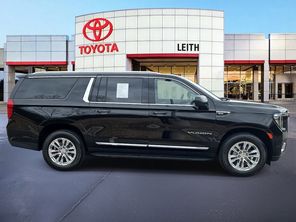 Clean CARFAX. Onyx Black 2023 GMC Yukon XL SLT 4WD 10-Speed Automatic with Overdrive EcoTec3 5.3L V8 LOCAL TRADE IN, BACK UP CAMERA, LEATHER, HEATED SEATS, PANORAMIC SUNROOF, NAVIGATION, THIRD ROW SEAT, 4-WHEEL DRIVE, SMART KEY W PUSH BUTTON START, LANE DEPARTURE ALERT W STEERING ASSIST, APPLE CARPLAY & ANDROID AUTO, POWER LIFTGATE, NO ACCIDENTS, MUST SEE!, 4WD, 3 Years of OnStar & Connected Services Plan (DISC), ABS brakes, Air Conditioning, Apple CarPlay/Android Auto, Auto High-beam Headlights, Auto-dimming Rear-View mirror, Automatic Emergency Braking, Automatic temperature control, Bose 9-Speaker Stereo Audio System Feature, Bright Chrome Bodyside Moldings, Bright Front & Rear Door Sill Plates, Compass, Delay-off headlights, Dual-Pane Panoramic Power Sunroof, Electronic Stability Control, Following Distance Indicator, Four wheel independent suspension, Front & Rear Park Assist, Front dual zone A/C, Front Pedestrian Braking, Fully automatic headlights, Hands-Free Power Programmable Rear Liftgate, Heated & Ventilated Driver & Front Passenger Seats, Heated Driver & Front Passenger Seats, Heated front seats, Inside Rear-View Auto-Dimming Mirror, IntelliBeam Automatic High Beam On/Off, Lane Change Alert w/Side Blind Zone Alert, Lane Keep Assist w/Lane Departure Warning, Low tire pressure warning, Memory seat, Navigation System, Not Equip w/Ventilated Seat Cushion Blower Motor, Not Equipped w/4-Way Driver & Fr Pass Pwr Lumbar, Occupant sensing airbag, Perforated Leather-Appointed Seating, Power door mirrors, Power driver seat, Power Liftgate, Power steering, Power windows, Premium Smooth Ride Suspension, Rear air conditioning, Rear seat center armrest, Rear window defroster, Remote keyless entry, Roof rack: rails only, Speed-sensing steering, Steering wheel mounted audio controls, Telescoping steering wheel, Tilt steering wheel, Traction control, Wheels: 20 x 9 6-Spoke Polished Aluminum.