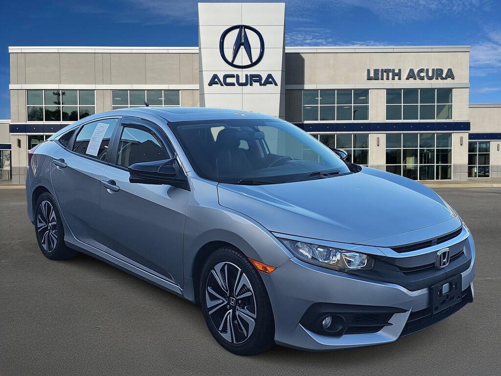 Lunar Silver Metallic 2018 Honda Civic EX-L FWD 1.5L I-4 DI DOHC Turbocharged Black w/Cloth Seat Trim, Apple CarPlay/Android Auto, Auto-dimming Rear-View mirror, Exterior Parking Camera Rear, Heated front seats, Power moonroof.