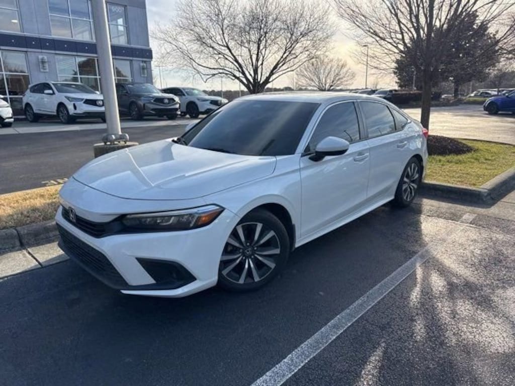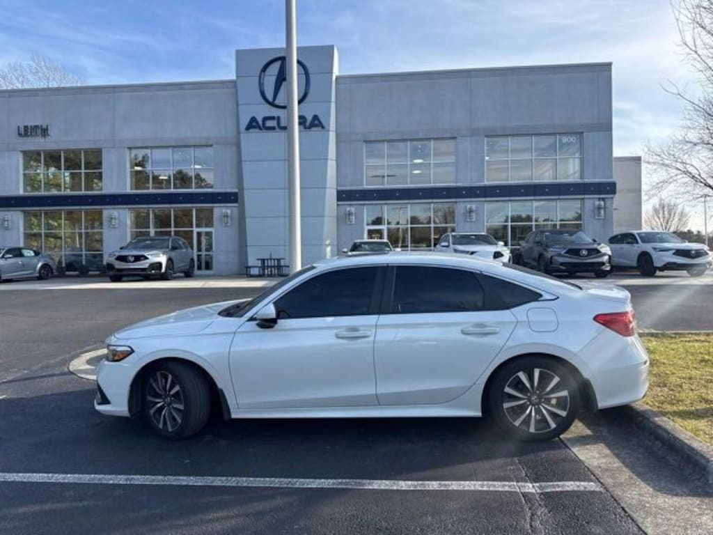 Platinum White Pearl 2023 Honda Civic EX FWD CVT 1.5L I-4 DI DOHC Turbocharged Black w/Cloth Seat Trim.