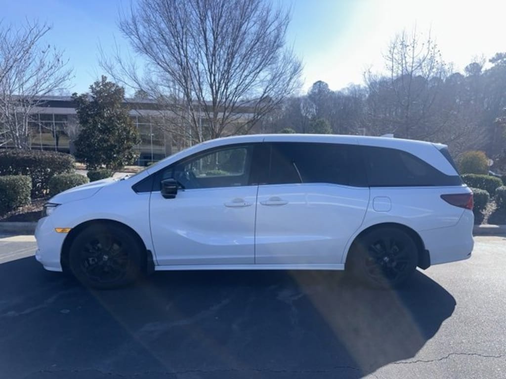 CARFAX One-Owner. Platinum White Pearl 2023 Honda Odyssey Sport FWD 10-Speed Automatic 3.5L V6 SOHC i-VTEC 24V 3rd row seats: split-bench, 4-Wheel Disc Brakes, 7 Speakers, A/V remote: CabinControl, ABS brakes, Adaptive Cruise Control: Adaptive Cruise Control (ACC) with Low-Speed Follow, Air Conditioning, AM/FM radio: SiriusXM, Anti-whiplash front head restraints, Auto High-beam Headlights, Automatic temperature control, Blind Spot Information (BSI) System warning, Brake assist, Electronic Stability Control, Exterior Parking Camera Rear, Front dual zone A/C, Fully automatic headlights, Heated door mirrors, Heated Front Bucket Seats, Lane departure: Lane Keeping Assist System (LKAS) active, Power driver seat, Power Liftgate, Power moonroof, Power steering, Radio: 160-Watt AM/FM/HD/SiriusXM Audio System, Remote keyless entry, Speed control, Steering wheel mounted audio controls.