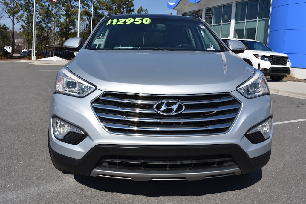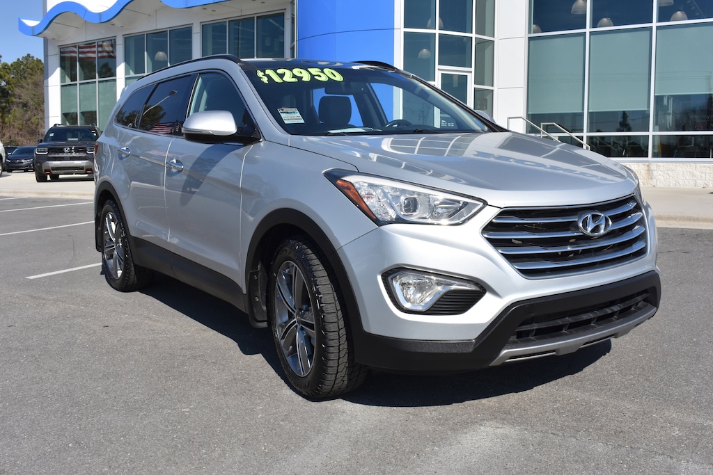 Clean CARFAX. Circuit Silver 2016 Hyundai Santa Fe Limited AWD 6-Speed Automatic with Shiftronic 3.3L V6 DGI DOHC 24V 3rd row seats: split-bench, 4-Wheel Disc Brakes, 6 Speakers, ABS brakes, Air Conditioning, Automatic temperature control, Brake assist, Cargo Cover/Screen, Cargo Net, Cargo Tray, CD player, Delay-off headlights, Dual front impact airbags, Dual front side impact airbags, Electronic Stability Control, Emergency communication system: Blue Link, Exterior Parking Camera Rear, Four wheel independent suspension, Front anti-roll bar, Front Bucket Seats, Front Center Armrest, Front dual zone A/C, Front fog lights, Fully automatic headlights, Garage door transmitter: HomeLink, Heated door mirrors, Heated Front Bucket Seats, Heated front seats, High-Intensity Discharge Xenon Headlights, Knee airbag, Leather Seating Surfaces, LED Taillights, Occupant sensing airbag, Option Group 04, Overhead airbag, Panic alarm, Panoramic Sunroof, Power door mirrors, Power driver seat, Power Liftgate, Power passenger seat, Power steering, Power windows, Radio: AM/FM/CD/HD Radio/MP3 Audio System, Rear air conditioning, Rear anti-roll bar, Rear Parking Assistance System, Rear window defroster, Rear window wiper, Remote keyless entry, Security system, Speed control, Speed-sensing steering, Split folding rear seat, Spoiler, Steering wheel mounted audio controls, Telescoping steering wheel, Tilt steering wheel, Traction control, Ultimate Liftgate Badging, Ultimate Package 04, Variably intermittent wipers, Wheels: 19" x 7.5" Aluminum Alloy.