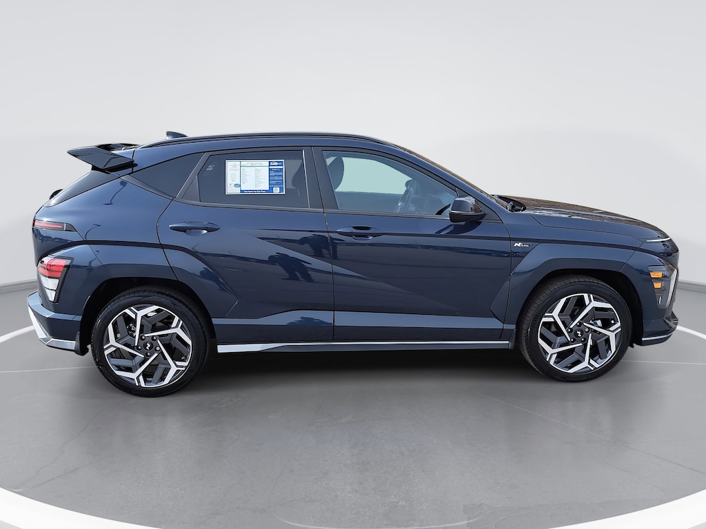 Denim Blue Pearl 2025 Hyundai Kona N Line S FWD 8-Speed Automatic I4 Local Trade, Auto High-beam Headlights, Automatic temperature control, Brake assist, Electronic Stability Control, Emergency communication system: Bluelink+, Exterior Parking Camera Rear, Front dual zone A/C, Fully automatic headlights, Heated Front Sport Bucket Seats, N-Line Alcantara Sport Combination Seat Trim, Option Group 01, Power driver seat, Radio: AM/FM/HD Radio/SiriusXM Audio System, Rear Bumper Applique, Rear window wiper, Remote keyless entry, Speed-sensing steering, Split folding rear seat, Steering wheel mounted audio controls, Traction control, Wheels: 19" x 7.5J Metallic Alloy.