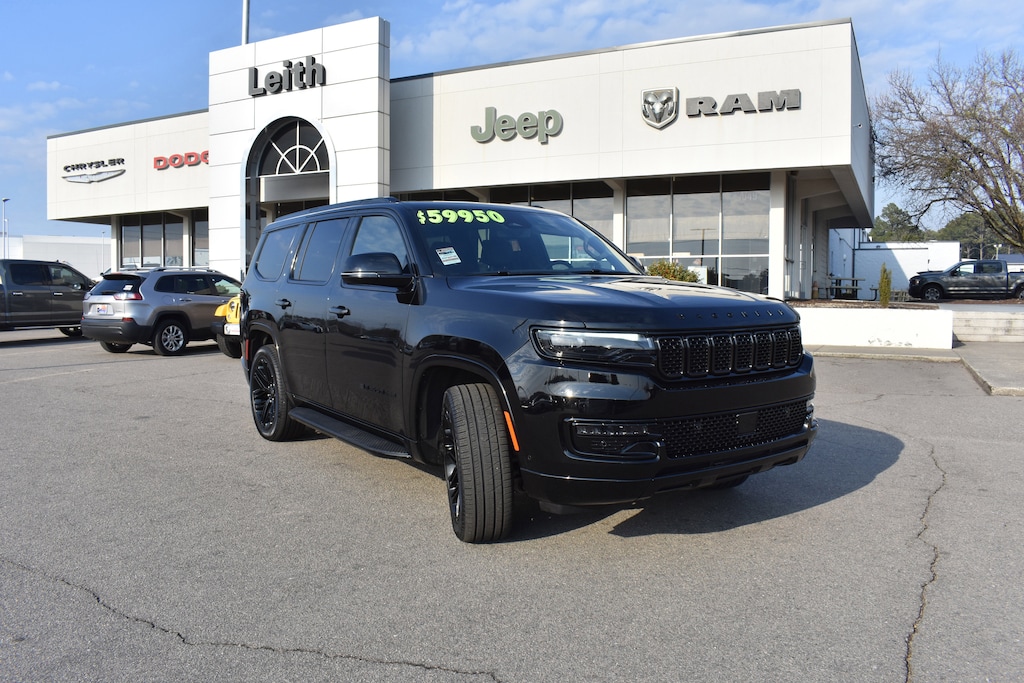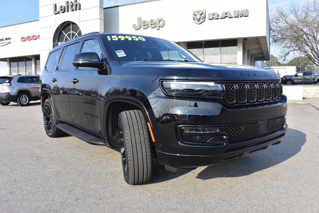 Clean CARFAX. CARFAX One-Owner. Silver Zynith 2024 Jeep Wagoneer Series III 4WD 8-Speed Automatic 3.0L I6 10 Speakers, 19 Speaker McIntosh Audio System, 2nd Row Manual Window Shades, 3 Panel Sunroof, 3.92 Rear Axle Ratio, 3rd row seats: bench, 4-Wheel Disc Brakes, ABS brakes, Adjustable pedals, Adjustable Roof Rail Crossbars, Air Conditioning, All-Season Floor Mats, Alloy wheels, AM/FM radio: SiriusXM with 360L, Amazon Fire TV Built-In, Anti-whiplash front head restraints, Apple CarPlay/Android Auto, Audio memory, Auto High-beam Headlights, Auto-dimming door mirrors, Auto-dimming Rear-View mirror, Auto-leveling suspension, Automatic temperature control, Brake assist, Bumpers: body-color, Cargo Cover, Cargo Tray, Chrome Tow Hooks, Compass, Convenience Group I, Delay-off headlights, Drowsy Driver Detection, Dual front impact airbags, Dual front side impact airbags, Electronic Rear Limited Slip Differential, Electronic Stability Control, Emergency communication system: Wagoneer Connect, Exterior Parking Camera Rear, Four wheel independent suspension, Front anti-roll bar, Front dual zone A/C, Front fog lights, Fully automatic headlights, Garage door transmitter, Genuine wood console insert, Genuine wood dashboard insert, Genuine wood door panel insert, HD Trailer Tow Package, Heated door mirrors, Heated front seats, Heated rear seats, Heated steering wheel, Heavy-Duty Engine Cooling, Illuminated entry, Intersection Collision Assist System, Knee airbag, Leather Trimmed Bucket Seats, Locking In-Vehicle Safe, Low tire pressure warning, Luxury Front & Rear Floor Mats, Memory seat, MOPAR Interior Protection Package, Navigation System, Normal Duty Suspension, Occupant sensing airbag, Outside temperature display, Overhead airbag, Overhead console, P&P Park & Unpark Assist w/Stop System, Panic alarm, Pedal memory, Power adjustable front head restraints, Power Deployable Running Boards, Power door mirrors, Power driver seat, Power Liftgate, Power passenger seat, Power steering, Power windows, Premium Group I, Quick Order Package 25N, Radio data system, Radio: Uconnect 5 Nav w/10.1" Display, Rain sensing wipers, Rear air conditioning, Rear anti-roll bar, Rear dual zone A/C, Rear Seat Video Group 1, Rear window defroster, Rear window wiper, Reclining 3rd row seat, Remote keyless entry, Removable Rear Tow Hook, Reversible Carpet/Vinyl Cargo Mat, Seatback Video Screens, Security system, Selec-Speed Control, Side Distance Warning, Speed control, Speed-sensing steering, Speed-Sensitive Wipers, Split folding rear seat, Steering wheel memory, Steering wheel mounted audio controls, Surround View Camera System, Tachometer, Telescoping steering wheel, Tilt steering wheel, Traction control, Traffic Sign Recognition, Trailer Brake Control, Trailer Hitch Zoom, Trip computer, Turn signal indicator mirrors, Variably intermittent wipers, Ventilated front seats, Video USB Port, Voltmeter, Wheels: 22" x 9.0" Premium 3 Aluminum.
