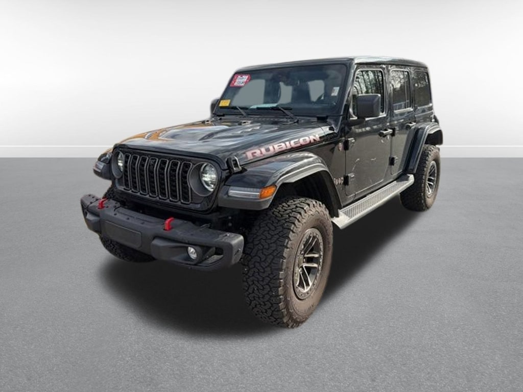 CARFAX One-Owner. Clean CARFAX. Black 2025 Jeep Wrangler Rubicon X 4WD 8-Speed Automatic 3.6L V6 24V VVT CARFAX CERTIFIED.. NO ACCIDENTS, ONE-OWNER, Alpine Premium Audio System, Apple CarPlay/Android Auto, Auxiliary Switches, Body Color Rubicon Highline Flare, Class II Receiver Hitch, Convenience Group, Heated Steering Wheel, MOPAR Hardtop Headliner, Nappa Leather Seats, Navigation System, ParkView Rear Back-Up Camera, Power Top Quarter Window Storage Bag, Quick Order Package 24Y Rubicon X, Rear Window Defroster, Rear Window Wiper/Washer, Removable Rear Quarter Windows, Safety Group, Sky 1-Touch Power Top, Steel Front Bumper, Steel Rear Bumper, Technology Group, Trailer Tow & Aux Switch Group, Trailer Tow Prep Package.