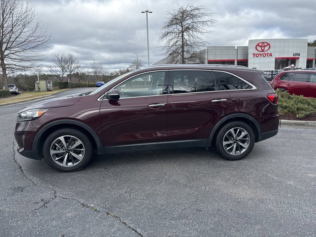 Sangria 2019 Kia Sorento EX FWD 8-Speed Automatic V6 AS IS CAR, LOCAL TRADE IN, BACK UP CAMERA, LEATHER, HEATED SEATS, PANORAMIC SUNROOF, NAVIGATION, SMART KEY W PUSH BUTTON START, APPLE CARPLAY & ANDROID AUTO, POWER LIFTGATE, MUST SEE TO APPRECIATE!, 110V Inverter, 18 x 7.5 Alloy Wheels, 2nd Row Shade Curtains, 3rd row seats: split-bench, ABS brakes, Air Conditioning, Apple CarPlay & Android Auto, Auto-dimming Rear-View mirror, Automatic temperature control, Carpeted Floor Mats (7-Passenger), Chrome Roof Rails, Delay-off headlights, Electronic Stability Control, EX Touring Package, Exterior Parking Camera Rear, Four wheel independent suspension, Front dual zone A/C, Fully automatic headlights, Garage door transmitter: HomeLink, harman/kardon Surround Sound Audio System, Heated Front Bucket Seats, Heated Steering Wheel, Leather Seat Trim, Leather steering wheel, LED Interior Lighting, Panoramic Sunroof, Park Distance Warning-Forward, Power driver seat, Power Liftgate, Power steering, Power windows, Radio: UVO eServices w/Premium Navigation, Rear window defroster, Remote keyless entry, Remote Start, Split folding rear seat, Steering wheel mounted audio controls, Telescoping steering wheel, Traction control, Turn signal indicator mirrors.