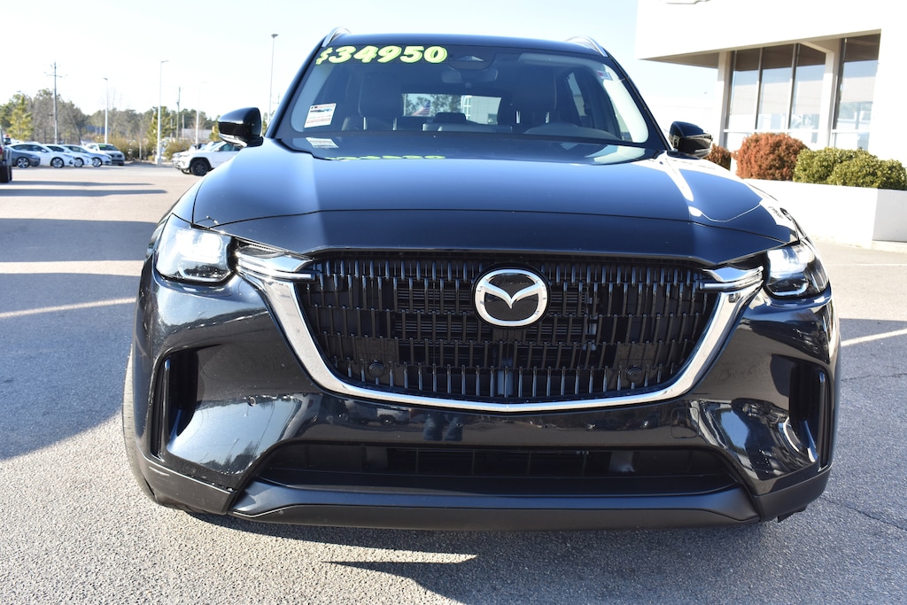 Clean CARFAX. CARFAX One-Owner. Jet Black Mica 2025 Mazda CX-90 3.3 Turbo Preferred AWD 8-Speed Automatic I6 Turbo 3rd row seats: bench, 4-Wheel Disc Brakes, 8 Speakers, ABS brakes, Air Conditioning, Alloy wheels, AM/FM radio, Auto High-beam Headlights, Automatic temperature control, Brake assist, Bumpers: body-color, Compass, Delay-off headlights, Dual front impact airbags, Dual front side impact airbags, E911 Automatic Emergency Notification, Electronic Stability Control, Emergency communication system: MAZDA CONNECT, Exterior Parking Camera Rear, Four wheel independent suspension, Front anti-roll bar, Front Center Armrest w/Storage, Front dual zone A/C, Fully automatic headlights, Heated door mirrors, Heated Front Bucket Seats, Heated front seats, Illuminated entry, Infotainment System Voice Command, Knee airbag, Leather Seat Trim, Leather Shift Knob, Leather steering wheel, Low tire pressure warning, Mazda Connected Services, Occupant sensing airbag, Outside temperature display, Overhead airbag, Overhead console, Pandora Internet Radio Integration, Panic alarm, Passenger door bin, Power door mirrors, Power driver seat, Power Liftgate, Power moonroof, Power passenger seat, Power steering, Power windows, Radio Broadcast Data System Program Information, Radio data system, Radio: AM/FM w/HD/8-Speaker Sound System, Rain sensing wipers, Rear air conditioning, Rear anti-roll bar, Rear reading lights, Rear window defroster, Rear window wiper, Remote keyless entry, SMS Text Msg Audio Delivery & Reply, Speed control, Speed-sensing steering, Split folding rear seat, Spoiler, Steering wheel mounted audio controls, Tachometer, Telescoping steering wheel, Tilt steering wheel, Traction control, Trip computer, Turn signal indicator mirrors, Variably intermittent wipers, Wheels: 19" x 8.5J Aluminum Alloy.