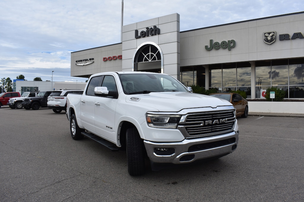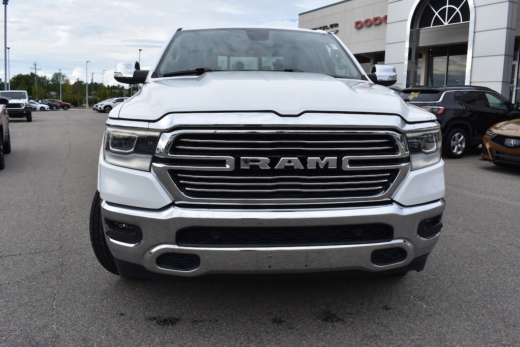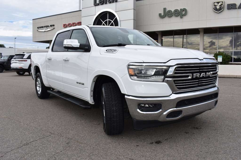 Priced below KBB Fair Purchase Price! Bright White Clearcoat 2020 Ram 1500 Laramie 4WD 8-Speed Automatic HEMI 5.7L V8 Multi Displacement VVT 1-Yr SiriusXM Guardian Trial, 10 Speakers, 3 Rear Seat Head Restraints, 3.21 Rear Axle Ratio, 4 Adjustable Cargo Tie-Down Hooks, 4 Way Front Headrests, 4-Wheel Disc Brakes, 48V Belt Starter Generator, 4G LTE Wi-Fi Hot Spot, 5-Year SiriusXM Traffic Service, 5-Year SiriusXM Travel Link Service, 8.4" Touchscreen Display, ABS brakes, Adjustable pedals, Air Conditioning, Alloy wheels, AM/FM radio: SiriusXM, Apple CarPlay, Apple CarPlay/Android Auto, Audio memory, Auto High Beam Headlamp Control, Auto-dimming door mirrors, Auto-dimming Rear-View mirror, Automatic temperature control, Bed Utility Group, Blind Spot & Cross Path Detection, Brake assist, Bumpers: chrome, Compass, Delay-off headlights, Deployable Bed Step, Disassociated Touchscreen Display, Dual front impact airbags, Dual front side impact airbags, Electronic Stability Control, Foam Bottle Insert (Door Trim Panel), For Details, Visit DriveUconnect.com, Front anti-roll bar, Front Center Armrest w/Storage, Front dual zone A/C, Front fog lights, Front wheel independent suspension, Fully automatic headlights, Garage door transmitter, Google Android Auto, GPS Antenna Input, GPS Navigation, HD Radio, Heated Front Seats, Heated front seats, Heated Steering Wheel, Heated steering wheel, Illuminated entry, Integrated Center Stack Radio, Laramie Level 1 Equipment Group, Leather steering wheel, Leather Trim 40/20/40 Bench Seat, Low tire pressure warning, Manufacturer's Statement of Origin, Memory seat, Occupant sensing airbag, Overhead airbag, Panic alarm, ParkSense Front/Rear Park Assist w/Stop, ParkSense Front/Rear Park Assist w/Stop (DISC), ParkView Rear Back-Up Camera, Pedal memory, Pick-Up Box Lighting, Power 4-Way Driver Lumbar Adjust, Power 4-Way Passenger Lumbar Adjust, Power 8-Way Driver & Passenger Seats, Power driver seat, Power passenger seat, Power steering, Power windows, Quick Order Package 25H Laramie, Radio data system, Radio: Uconnect 4 w/8.4" Display, Radio: Uconnect 4C Nav w/8.4" Display, Rain Sensitive Windshield Wipers, Rear 60/40 Folding Split Recline Seat, Rear anti-roll bar, Rear window defroster, Remote keyless entry, Remote Tailgate Release, Security system, SiriusXM Satellite Radio, SiriusXM Traffic Plus, SiriusXM Travel Link, Speed control, Split folding rear seat, Spray In Bedliner, Steering wheel mounted audio controls, Tachometer, Tailgate Ajar Warning Lamp, Telescoping steering wheel, Tilt steering wheel, Traction control, Trip computer, Turn signal indicator mirrors, Variably intermittent wipers, Ventilated Front Seats, Ventilated front seats, Voltmeter, Wheels: 18" x 8" Aluminum Base Painted.
