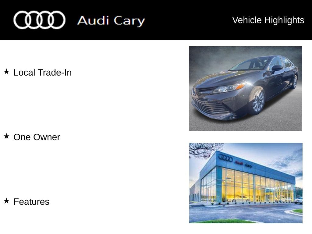 Midnight Black Metallic 2020 Toyota Camry LE 8-Speed Automatic 2.5L I4 DOHC 16V FWD CARFAX One-Owner. Clean CARFAX. Local Trade-In, One Owner, Features, Black w/Fabric Seat Trim.
