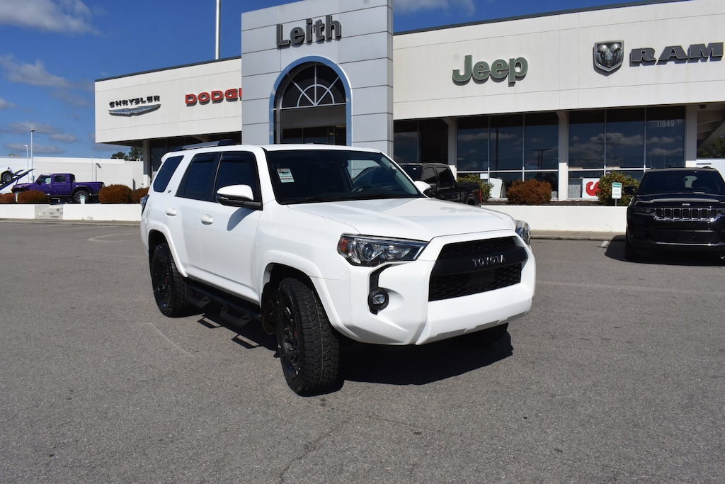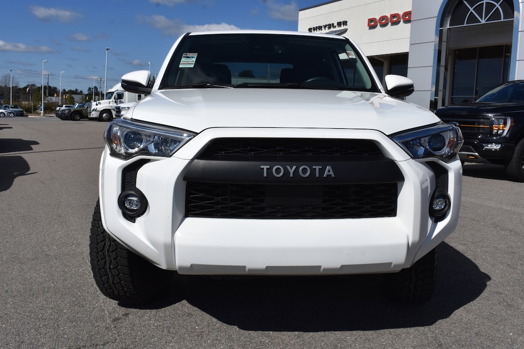 Clean CARFAX. CARFAX One-Owner. Super White 2021 Toyota 4Runner SR5 Premium 4WD 5-Speed Automatic with Overdrive 4.0L V6 SMPI DOHC 17" x 7.0" 6-Spoke Alloy Wheels, 3.727 Axle Ratio, 4-Wheel Disc Brakes, 8 Speakers, ABS brakes, Air Conditioning, Alloy wheels, AM/FM radio: SiriusXM, Anti-whiplash front head restraints, Apple CarPlay/Android Auto, Auto High-beam Headlights, Auto-dimming Rear-View mirror, Body Color Heated Mirrors, Brake assist, Bumpers: body-color, Compass, Dual front impact airbags, Dual front side impact airbags, Electronic Stability Control, Emergency communication system: Safety Connect with 1-year trial, Exterior Parking Camera Rear, Front anti-roll bar, Front fog lights, Front wheel independent suspension, Garage Door Opener, Garage door transmitter: HomeLink, Heated door mirrors, Heated Front Bucket Seats, Heated front seats, Illuminated entry, Knee airbag, Leather Shift Knob, Leather steering wheel, Low tire pressure warning, Outside temperature display, Overhead airbag, Panic alarm, Power door mirrors, Power driver seat, Power passenger seat, Power steering, Power windows, Radio: Premium Audio w/Dynamic Navigation, Rear anti-roll bar, Rear seat center armrest, Rear window defroster, Rear window wiper, Remote keyless entry, Roof rack: rails only, Security system, Softex Synthetic Leather Seat Trim, Speed control, Speed-sensing steering, Spoiler, Steering wheel mounted audio controls, Tachometer, Telescoping steering wheel, Tilt steering wheel, Traction control, Trip computer, Turn signal indicator mirrors, Variably intermittent wipers.