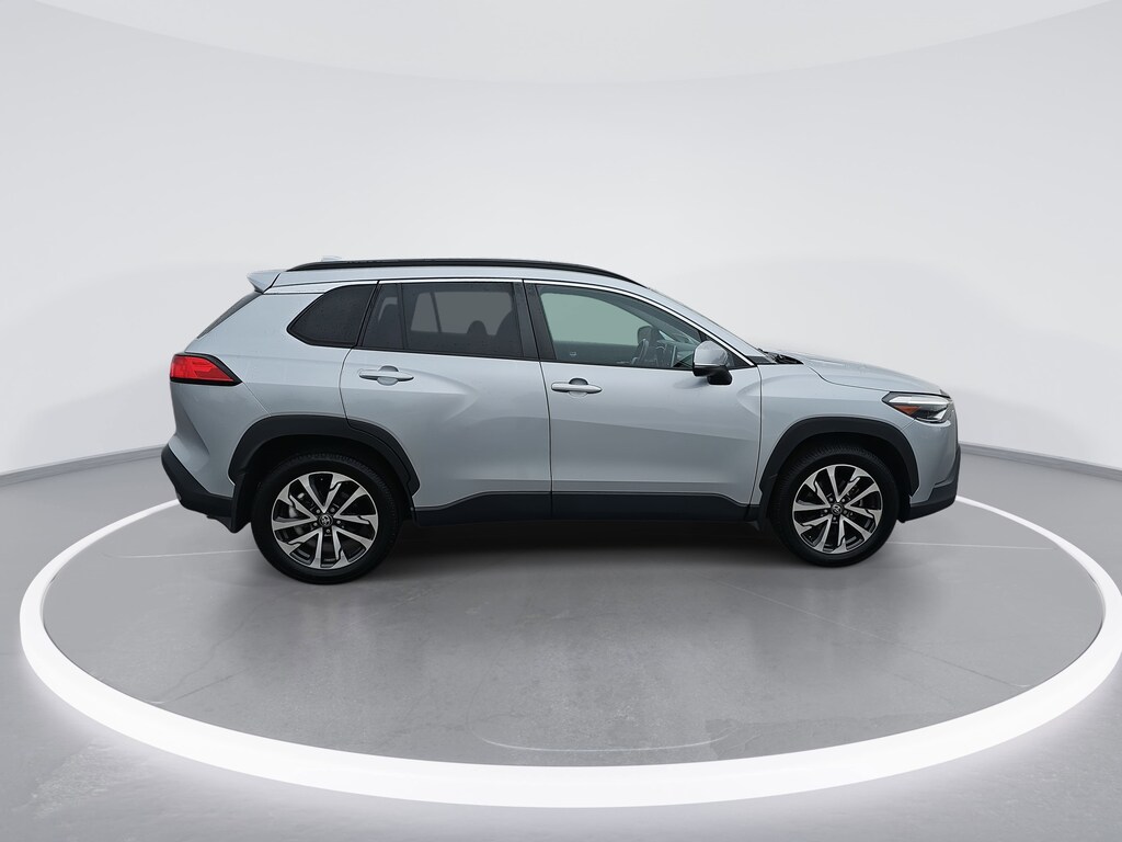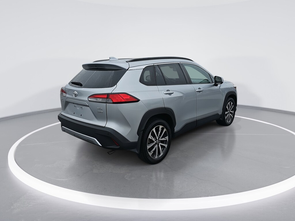 Sonic Silver 2022 Toyota Corolla Cross XLE AWD 2.0L I4 PDI DOHC 16V LEV3-SULEV30 169hp 4-Wheel Disc Brakes, 4.014 Axle Ratio, 6 Speakers, ABS brakes, Air Conditioning, Alloy wheels, AM/FM radio: SiriusXM Ready, Apple CarPlay/Android Auto, Auto High-beam Headlights, Auto-dimming Rear-View mirror, Automatic temperature control, Brake assist, Bumpers: body-color, Delay-off headlights, Dual front impact airbags, Dual front side impact airbags, Electronic Stability Control, Emergency communication system: Safety Connect with 1-year trial, Exterior Parking Camera Rear, Four wheel independent suspension, Front anti-roll bar, Front dual zone A/C, Front fog lights, Fully automatic headlights, Heated door mirrors, Heated Front Bucket Seats, Heated front seats, Illuminated entry, Knee airbag, Leather Shift Knob, Leather steering wheel, Low tire pressure warning, Occupant sensing airbag, Outside temperature display, Overhead airbag, Panic alarm, Passenger vanity mirror, Power door mirrors, Power driver seat, Power steering, Power windows, Radio data system, Radio: 6 Speaker Audio, Rear anti-roll bar, Rear side impact airbag, Rear window defroster, Rear window wiper, Remote keyless entry, Roof rack: rails only, Security system, Softex Synthetic Leather Seat Trim, Speed control, Split folding rear seat, Spoiler, Steering wheel mounted audio controls, Tachometer, Telescoping steering wheel, Tilt steering wheel, Traction control, Trip computer, Turn signal indicator mirrors, Variably intermittent wipers, Wheels: 18" Alloy w/Black-Painted Machine-Finish.
