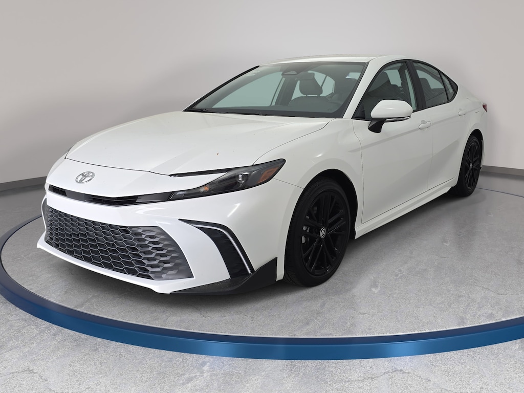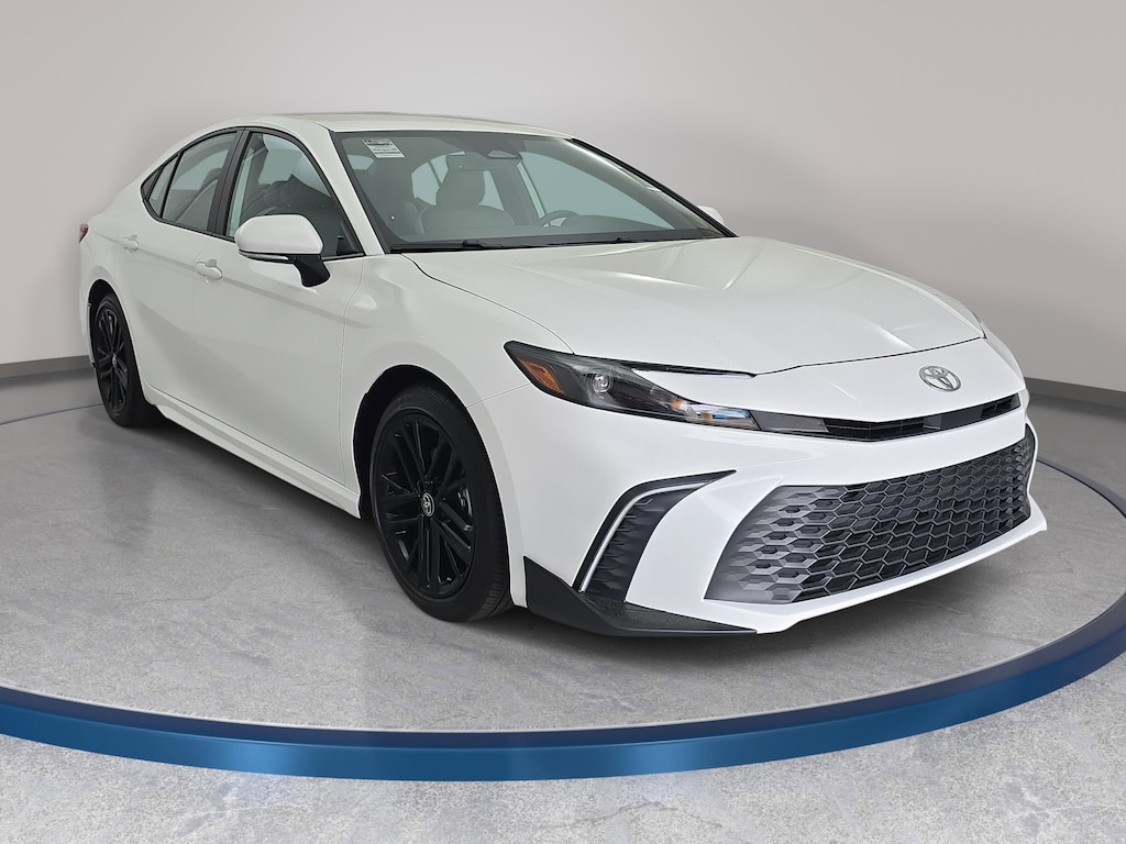 2025 Toyota Camry SE 2.5L 4-Cylinder 16V DOHC 2.5L 4-Cylinder 16V DOHC, 4-Wheel Disc Brakes, 6 Speakers, ABS brakes, Air Conditioning, Alloy wheels, AM/FM radio: SiriusXM, Apple CarPlay/Android Auto, Auto High-beam Headlights, Auto-Dimming Rearview Mirror w/HomeLink, Automatic temperature control, Brake assist, Bumpers: body-color, Convenience Package, Delay-off headlights, Driver door bin, Driver vanity mirror, Dual front impact airbags, Dual front side impact airbags, Electronic Stability Control, Emergency communication system: Safety Connect (up to 10-year trial subscription), Exterior Parking Camera Rear, Four wheel independent suspension, Front anti-roll bar, Front Bucket Seats, Front Center Armrest, Front dual zone A/C, Front reading lights, Fully automatic headlights, Heated door mirrors, Illuminated entry, Knee airbag, Leather Shift Knob, Leather steering wheel, Low tire pressure warning, Occupant sensing airbag, Outside temperature display, Overhead airbag, Overhead console, Panic alarm, Passenger door bin, Passenger vanity mirror, Power door mirrors, Power driver seat, Power steering, Power windows, Radio data system, Radio: Toyota Audio Multimedia w/12.3" Touchscreen, Radio: Toyota Audio Multimedia w/8" Touchscreen, Rear anti-roll bar, Rear reading lights, Rear seat center armrest, Rear side impact airbag, Rear window defroster, Remote keyless entry, Security system, Smart Key System, SofTex & Fabric Seat Trim, Speed control, Speed-sensing steering, Split folding rear seat, Spoiler, Steering wheel mounted audio controls, Telescoping steering wheel, Tilt steering wheel, Traction control, Trip computer, Turn signal indicator mirrors, Variably intermittent wipers, Wheels: 18" Black-Finished Alloy.