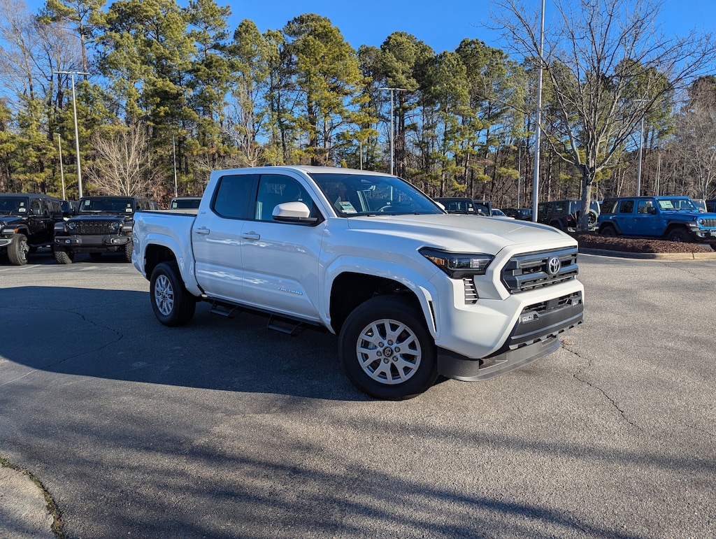 Ice Cap 2025 Toyota Tacoma SR5 4WD 8-Speed Automatic 2.4L 4-Cylinder OWNED BY DEALER, BACK UP CAMERA, 4-WHEEL DRIVE, SMART KEY W PUSH BUTTON START, PRE-COLLISION SYSTEM W PEDESTRIAN DETECTION, FULL-SPEED RANGE DYNAMIC RADAR CRUISE CONTROL, LANE DEPARTURE ALERT W STEERING ASSIST, APPLE CARPLAY & ANDROID AUTO, 1-OWNER, NO ACCIDENTS, MUST SEE!, ABS brakes, Air Conditioning, Anti-whiplash front head restraints, Apple CarPlay/Android Auto, Auto High-beam Headlights, Electronic Stability Control, Exterior Parking Camera Rear, Four wheel independent suspension, Power steering, Power windows, Radio: 8" Toyota Audio Multimedia, Steering wheel mounted audio controls, Telescoping steering wheel, Traction control, Wheels: 17" Styled Alloy.