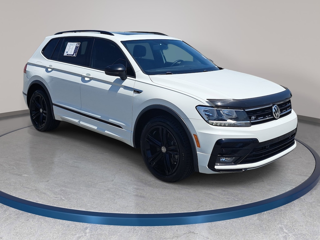 Pure White 2019 Volkswagen Tiguan 2.0T SEL R-Line FWD 8-Speed Automatic with Tiptronic 2.0L TSI DOHC Local Trade, Non-Smoker, Purchased Here, 3.33 Axle Ratio, 3rd row seats: bench, 4-Wheel Independent Suspension, AM/FM radio: SiriusXM, Automatic temperature control, Brake assist, Electronic Stability Control, Exterior Parking Camera Rear, Forward collision: FCW w/Autonomous Emergency Braking mitigation, Front dual zone A/C, Fully automatic headlights, Heated Front Comfort Seats, Navigation System, Perforated V-Tex Leatherette Seating Surfaces, Power driver seat, Power Liftgate, Power moonroof, Radio: Discover Media AM/FM/HD, Rear window wiper, Remote keyless entry, Speed-sensing steering, Split folding rear seat, Steering wheel mounted audio controls, Traction control, Wheels: 19" Black Twin 5-Spoke Alloy.