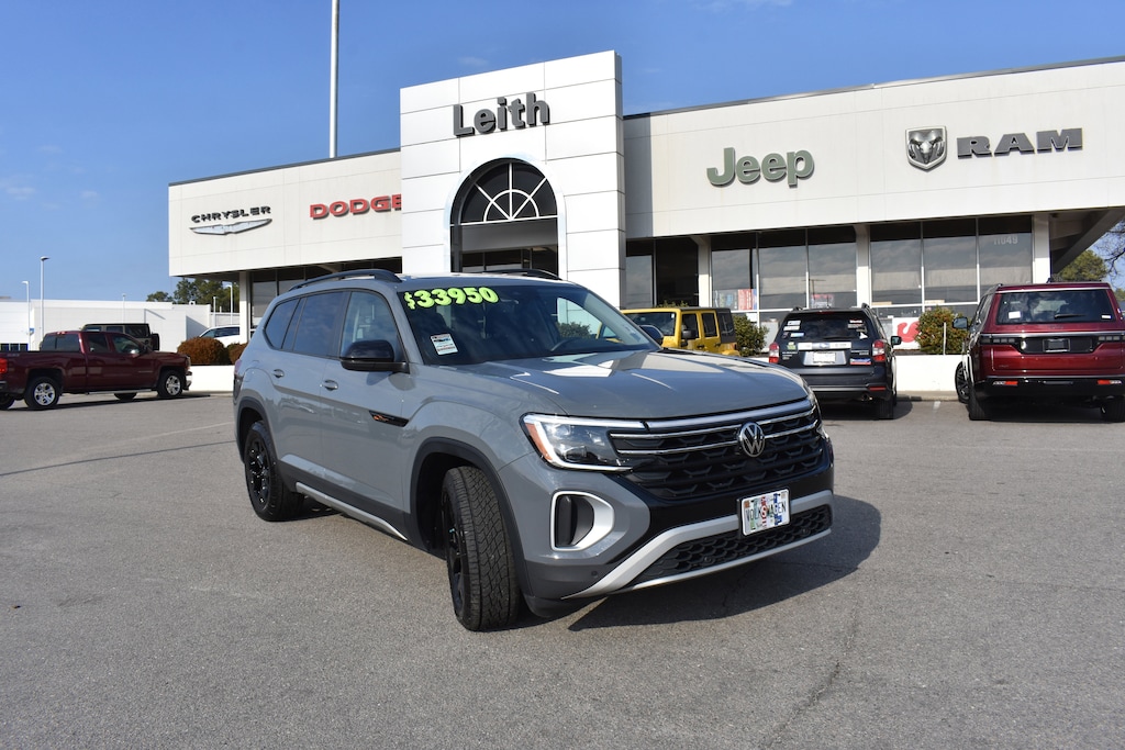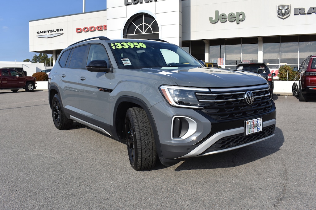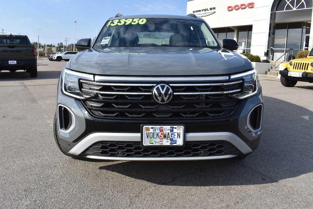 Clean CARFAX. CARFAX One-Owner. Gray 2024 Volkswagen Atlas 2.0T Peak Edition SE w/Technology AWD 8-Speed Automatic with Tiptronic 2.0L TSI 3rd row seats: split-bench, 4-Wheel Disc Brakes, ABS brakes, Air Conditioning, Auto-dimming Rear-View mirror, Automatic temperature control, Bumpers: body-color, Chrome Bumperdillo Rear Bumper Protection Plate, Delay-off headlights, Dual front impact airbags, Dual front side impact airbags, Emergency communication system: VW Car-Net Safe & Secure 5-year, Exterior Parking Camera Rear, Four wheel independent suspension, Front anti-roll bar, Front Bucket Seats, Front dual zone A/C, Front fog lights, Fully automatic headlights, Heated door mirrors, Heated front seats, Heated steering wheel, Heated/Actively Ventilated Front Bucket Seats, Occupant sensing airbag, Overhead airbag, Panic alarm, Perforated V-Tex Leatherette Seating Surfaces, Power door mirrors, Power driver seat, Power Liftgate, Power moonroof: Panoramic, Power steering, Power windows, Rain sensing wipers, Rear air conditioning, Rear seat center armrest, Remote keyless entry, Security system, Speed control, Speed-sensing steering, Split folding rear seat, Spoiler, Steering wheel mounted audio controls, Telescoping steering wheel, Tilt steering wheel, Traction control, Ventilated front seats, Wheels: 18" Black Painted 5-Spoke Alloy.