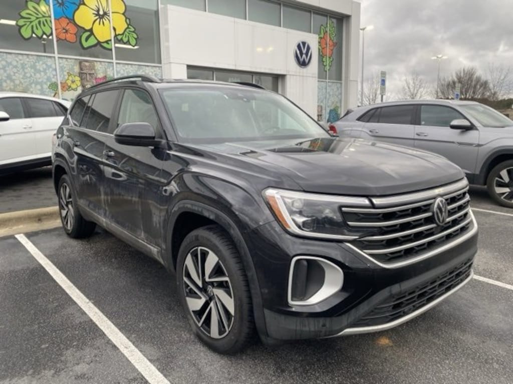 Deep Black Pearl 2024 Volkswagen Atlas 2.0T SE w/Technology FWD 8-Speed Automatic with Tiptronic 2.0L TSI Non-Smoker, 3.60 Axle Ratio, 3rd row seats: split-bench, Automatic temperature control, Brake assist, Delay-off headlights, Electronic Stability Control, Exterior Parking Camera Rear, Four wheel independent suspension, Front dual zone A/C, Fully automatic headlights, Heated front seats, Heated steering wheel, Heated/Actively Ventilated Front Bucket Seats, Perforated V-Tex Leatherette Seating Surfaces, Power driver seat, Power Liftgate, Radio: MIB3 Composition Media, Rain sensing wipers, Rear air conditioning, Rear window wiper, Remote keyless entry, Speed-sensing steering, Split folding rear seat, Steering wheel mounted audio controls, Traction control, Ventilated front seats, Wheels: 20" 2-Tone Machined Alloy.