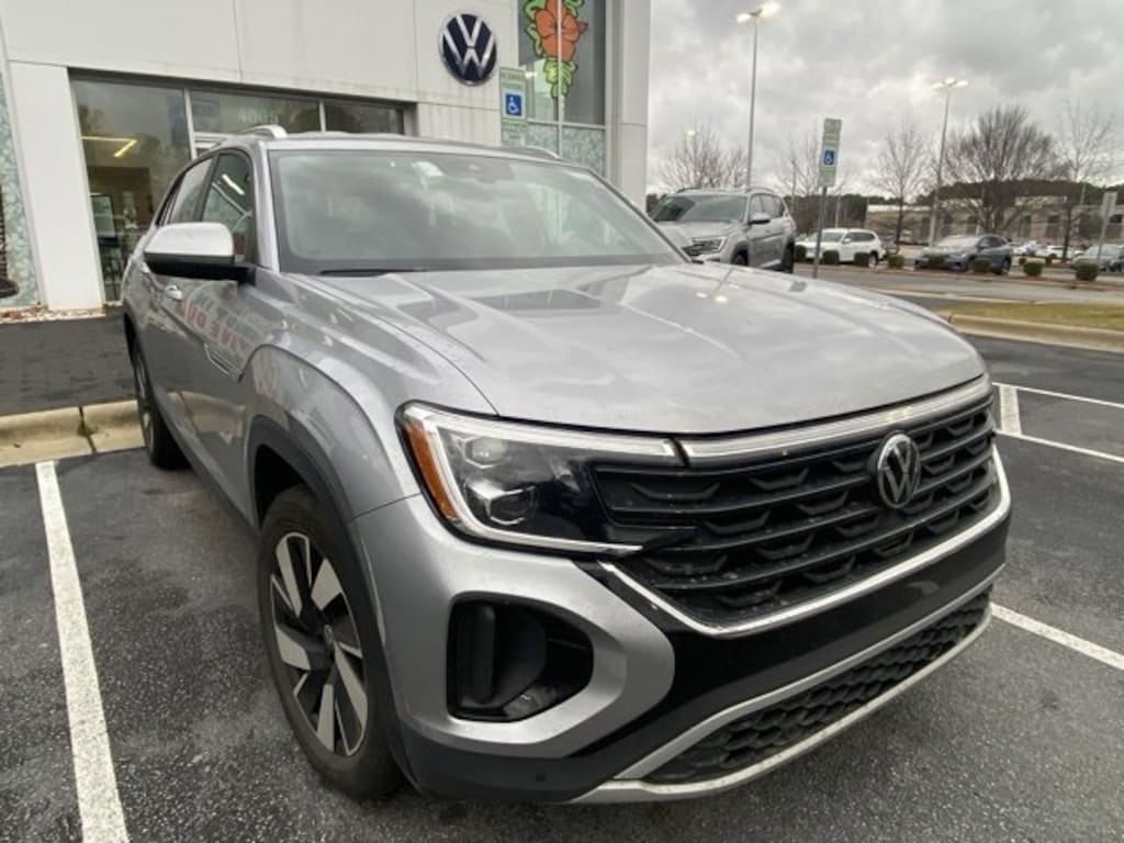 Silver Mist Metallic 2024 Volkswagen Atlas Cross Sport 2.0T SE w/Technology FWD 8-Speed Automatic with Tiptronic 2.0L TSI Non-Smoker, 3.60 Axle Ratio, 4-Wheel Independent Suspension, Automatic temperature control, Brake assist, Electronic Stability Control, Exterior Parking Camera Rear, Front dual zone A/C, Front fog lights, Fully automatic headlights, Heated front seats, Perforated V-Tex Leatherette Seating Surfaces, Power driver seat, Power Liftgate, Radio: MIB3 Composition Media AM/FM/HD, Rain sensing wipers, Rear window wiper, Remote Engine Start Feature, Remote keyless entry, Speed-sensing steering, Split folding rear seat, Steering wheel mounted audio controls, Traction control, Ventilated front seats.